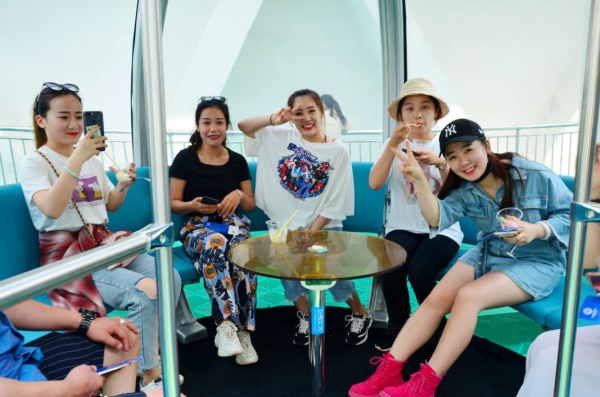 白浪河入海口,水勢平緩,河面寬闊,“渤海之眼”摩天輪矗立在白浪河上,高145米,是世界上最高的無軸式摩天輪、世界上首例編織網格摩天輪、世界上首次無軸式輪橋合一摩天輪,自2018年運行以來,游人如織,已成為網紅打卡地。“我們是從抖音上看到,開車過來到網紅地打卡,到了眼前覺得這摩天輪特別壯觀,乘坐感覺很好,挺寬敞、挺平穩。”來自淄博的游客張先生激動地說。“渤海眼”摩天輪,登高望遠,俯瞰海河風光。86歲的老黨員單吉祿第一次在145米的摩天輪轎廂里俯瞰家鄉,“濱海變化太大了,感覺真的很幸福。”